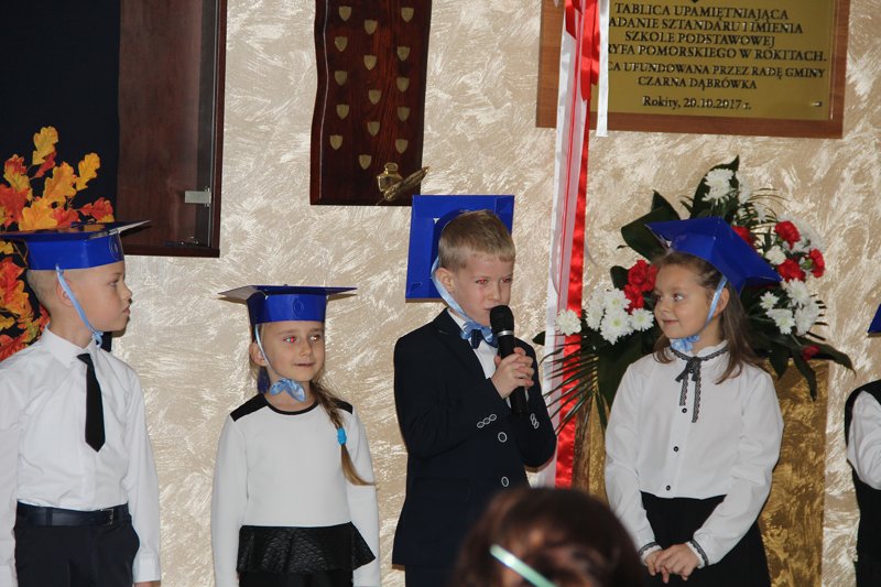 24 X 2017r. był dla uczniów pierwszej klasy bardzo ważnym dniem. Tego dnia zostali włączeni do grona uczniów Szkoły Podstawowej im. Gryfa Pomorskiego w Rokitach.
