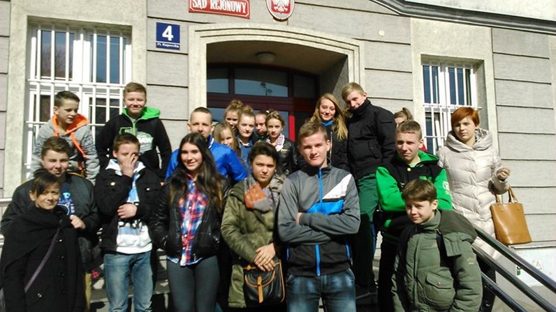 Dnia 5 marca 2018 roku klasa II i III gimnazjum udała się wraz z panią pedagog do Sądu Rejonowego w Lęborku. Celem wyjazdu była popularyzacja problematyki prawnej wśród młodzieży szkolnej, zapoznanie jej z podstawowymi zasadami, rządzącymi salą sądową. Młodzież mogła na własne oczy zobaczyć oraz osobiście uczestniczyć w rozprawie karnej.