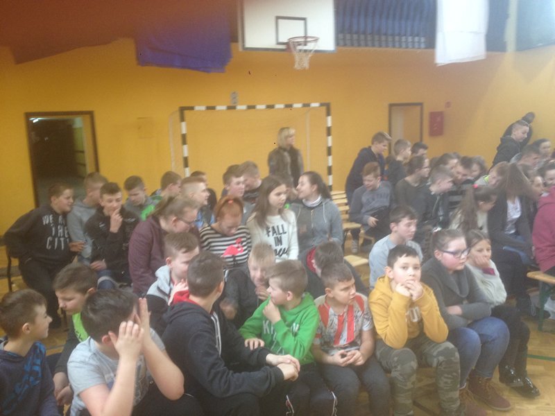 Dnia 30.11.2017r. w klasach VII,II gim.,III gim. odbyło się spotkanie z policjantem. Celem spotkania z panem Andrzejem Sywanycz było uświadomienie dzieciom, co to jest przemoc wśród rówieśników, jakiego typu zachowania zalicza się do przemocy. Policjant podał przykłady zachowań świadczących o przemocy fizycznej, psychicznej i agresji. Poinformował także uczniów o konsekwencjach jakie grożą, jeśli osoba stosująca przemoc nie zmieni swojego zachowania.