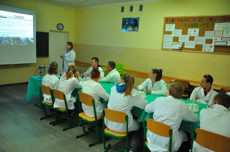 W środę 28 maja w naszej szkole odbyła się ciekawa lekcja chemii. Nasi goście z Politechniki Gdańskiej przeprowadzili 3 różne godzinne zajęcia na temat zachowania się wskaźników w kwasach i zasadach. Pierwsza grupa samodzielnie przeprowadzała eksperymenty chemiczne, druga zaznajamiała się z tematem grając w grę chemiczną natomiast trzecia uczestniczyła w lekcji z wykorzystaniem multimediów.
